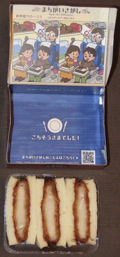 先日名古屋に住んでる友人と会った帰りに東京へ戻るN700系のぞみ号のグリ~ン車内で食べる為にまぁ1つだけじゃぁこのカツサンドは3つしか入って無いから物足りない感じがしましたので思い切って2つ購入しましたけどやはりこの味は名古屋ならではの物で他ではまず味わえないなぁと思いましたしN700系のぞみ号に乗る前に自販機で購入した静岡茶との相性も抜群でしたよ~だからこれからも名古屋に行ったら絶対必ず購入するようにしますよ~!!