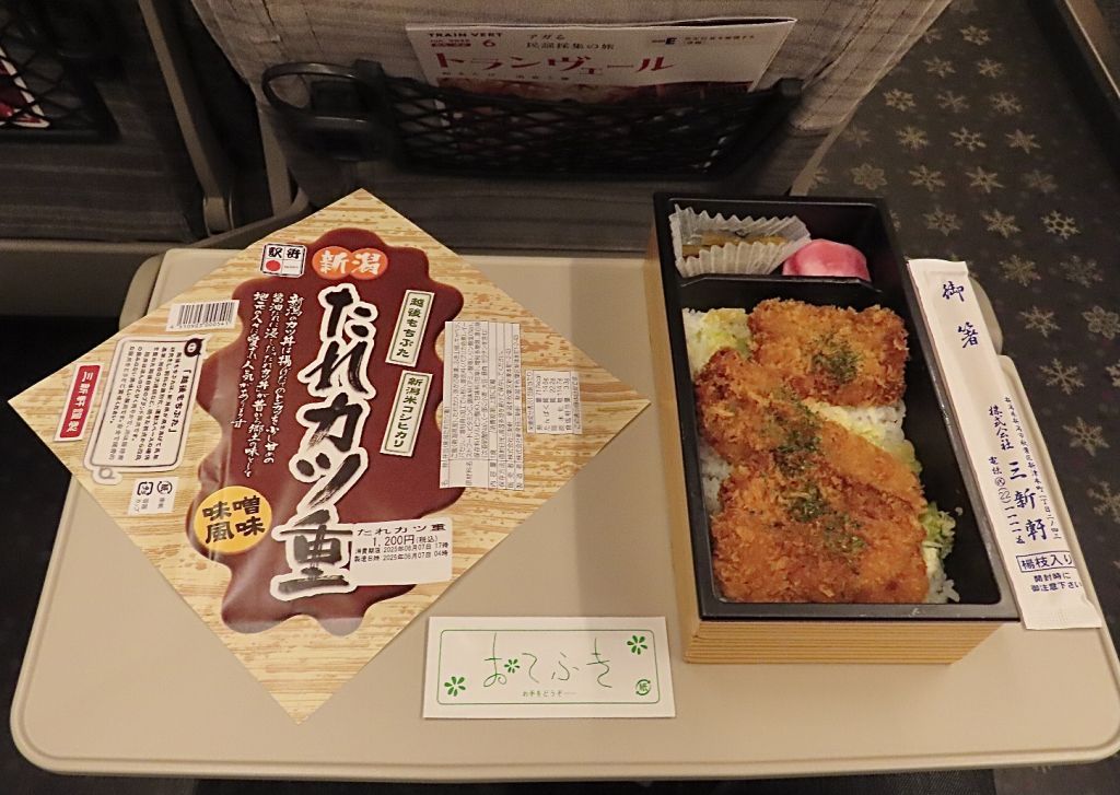カツが美味い!米が美味い!見た目はシンプルなカツ丼ですが、使われている豚肉は「越後もちぶた」というブランド豚肉です。適度な厚みで歯ごたえがあり、味噌風味のタレともマッチしています。駅弁売り場にあった最後の一つで、正直なところあまり期待していなかったのですが、それは杞憂でした。
