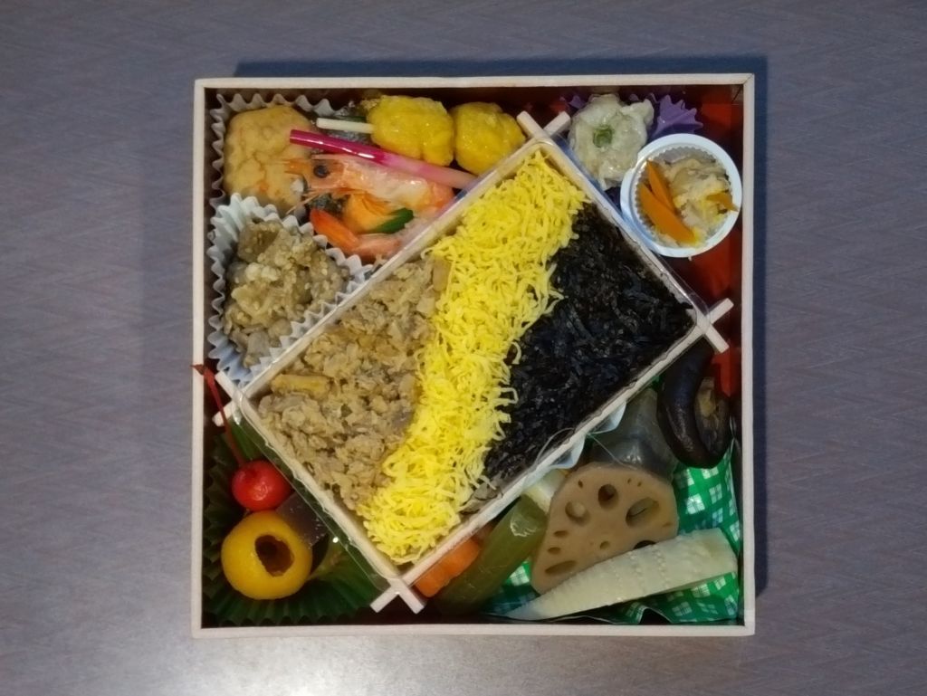 コロナ明け(?)のやや人出が増えている博多駅で「長崎街道」買って、夕ご飯にいただきました。長崎街道の宿場町の絵を開けて、、かしわ飯、シウマイ、豚角煮、枇杷の実、エビ、ウミタケ粕漬、チェリー、羊羹、中身の豊富さ・豪華さにびっくり、ほんとに駅弁の華、いただきました!! 2020/05/27
