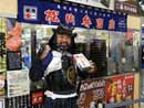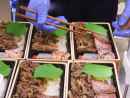 1889年、草津駅開業とともに創業した老舗調製元「南洋軒」。59回大会の実演個数販売ベスト3にランクインした駅弁「近江牛 極」がパワーアップして対決企画に登場。通常品よりカットステーキ60%増量で登場した前回ですが、今回の「近江牛【極スペシャル】」ではカットステーキをさらに10%増量。ご飯の上の半分の面に特製の割下で仕上げたすき焼き、ショウガをトッピング。もう半分の面に、ピリッとした甘辛さが美味しい焼肉に糸唐辛子をのせ、その上にさしが入った近江牛ステーキを贅沢に全面に盛りつけて仕上げます。[各日600食販売予定]