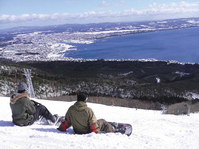目の前にはむつ湾が広がり、そこに向かって滑り降りるコースは爽快