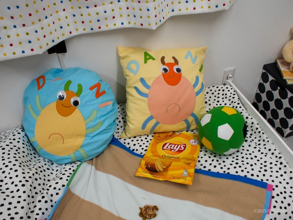 ところが、その光は実は「家中に存在する数千万匹のダニ」をイメージしたもの。壁やクッション、ぬいぐるみ、ティッシュ箱など、あちこちに“ダニ”をモチーフにした隠れアイテムが紛れ込んでいます横澤さんは「気持ち悪い!超不快~!」と体をのけぞらせつつも、光の美しさとのギャップに驚愕の表情を見せました。