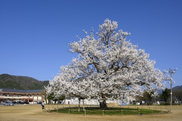 校庭に樹齢140年以上にもなるエドヒガンが咲く