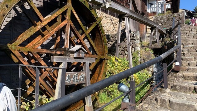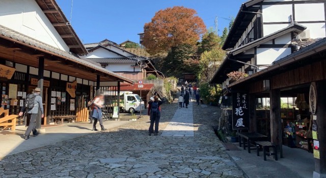 大火により古い町並みはほぼ消失したが、その後復元された。お土産屋などがたくさん並ぶ観光スポット。昔使われていた旧中山道も残っており、いまでも隣の妻籠宿まで3時間ほどで歩いて行ける。