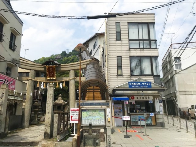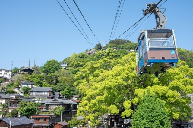 広島県尾道市にある「千光寺山ロープウェイ」は、神社とお寺の上を通過する 日本でも類を見ないロープウェイで、所要時間約3分。山頂には、日本さくら名所100選に選ばれた千光寺公園や展望台があり、春には桜、初夏にはツツジ、秋には紅葉と四季折々の花を見ながら空中散歩が楽しめます。また、山頂から麓にかけては「文学のこみち」と呼ばれる散策路が整備されており、尾道ゆかりの作家の詩碑が点在しています。ロープウェイの車窓からは、尾道の歴史ある町並みや瀬戸内海の風景を楽しむことができ、観光客に人気のスポットとなっています。