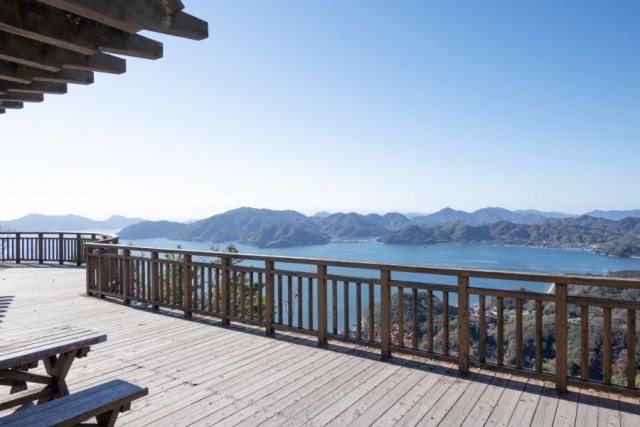 標高283m。向島・高見山展望台の展望デッキからは、しまなみ海道因島大橋などを見ることができます・