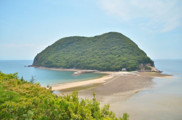 鴨之越は浦島太郎ゆかりの地。対岸の丸山島に歩いて渡ることができます。