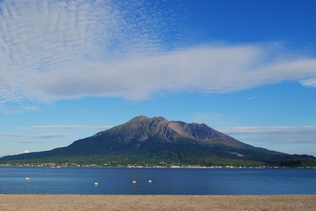錦江湾を挟んで鹿児島市の眼前にそびえる活火山の島。北岳、中岳、南岳のから成る複式火山で、南岳は現在も活動を続けている。今も噴煙をあげるその姿は鹿児島のシンボルといってもよいだろう。