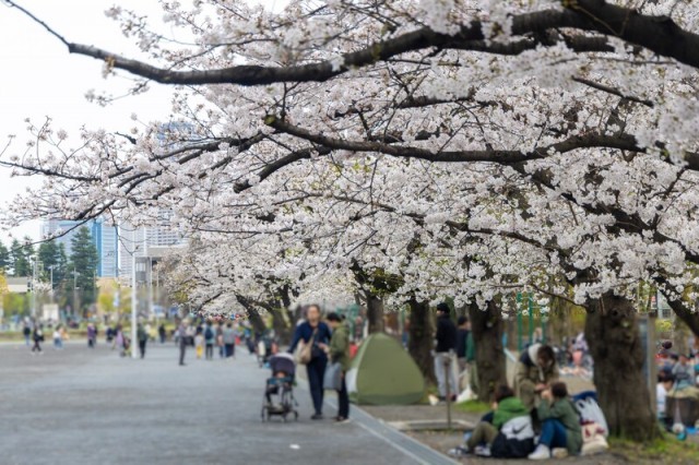 陸上競技場の隣の広場は、お花見にぴったりのスポットで例年多くの人でにぎわいます。