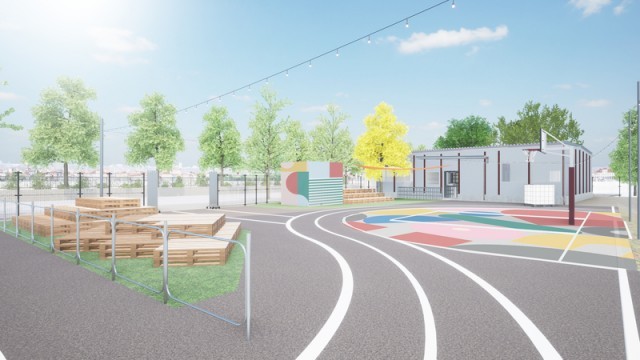 バスケットボールやダンス等を楽しめる公園。バスケットボールコートやダンススタジオに加え、屋外広場「グリーンコート」なども新設