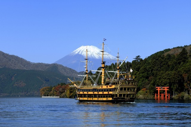 桃源台港、箱根町港、元箱根港をそれぞれ周遊している海賊船。