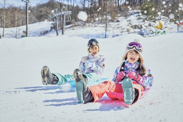 全14コースのうち8コース(58%)が初心者向けというコース編成と人工雪のゲレンデ、レジャーに最適な冬の軽井沢の晴天率の高さ、新幹線駅からのスキー場まで徒歩約10分というアクセスの良さが人気のスキー場です。