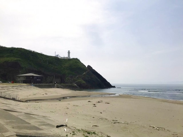 白い灯台が目印の角田浜海水浴場で夏休みに海水浴も楽しめます。