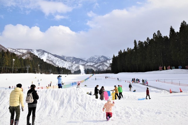 ゲレンデベースでアプローチしやすいスマイルキッズパークなどもあります。ゲレンデサイドには、レストランや休憩スペース、キッズルームなども充実。