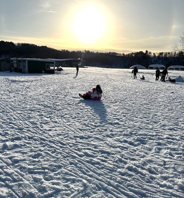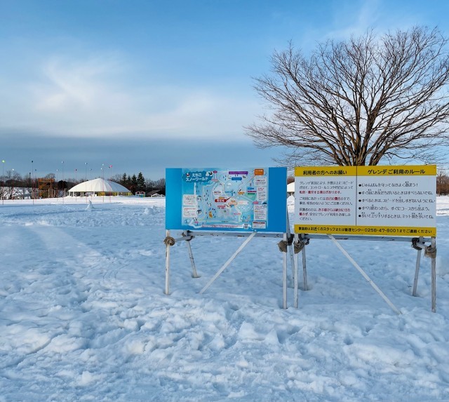 トランポリン「ふわふわードーム」、木製遊具、水の遊び場、車型の変形自転車などがあります。雪割草、チューリップ、ばら、コスモスなど季節の花も楽しめます。4月下旬から5月上旬に『チューリップまつり』が開催されます。冬には、北陸地方最大級・150mの広いソリゲレンデなども登場します。