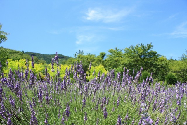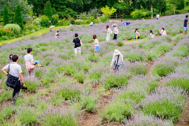 ラベンダーを丘陵一面に敷き詰めた空中庭園