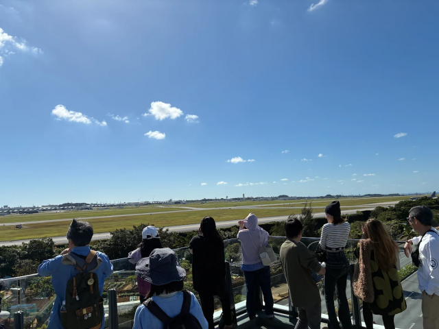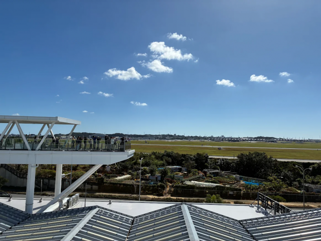 米軍嘉手納飛行場が一望できる展望フロア、基地の様子や戦闘機は見学出来る。また休憩室、トイレ、公衆電話、情報提供装置が設置されてる。24時間レストランや嘉手納町の特産品展示販売場もある。