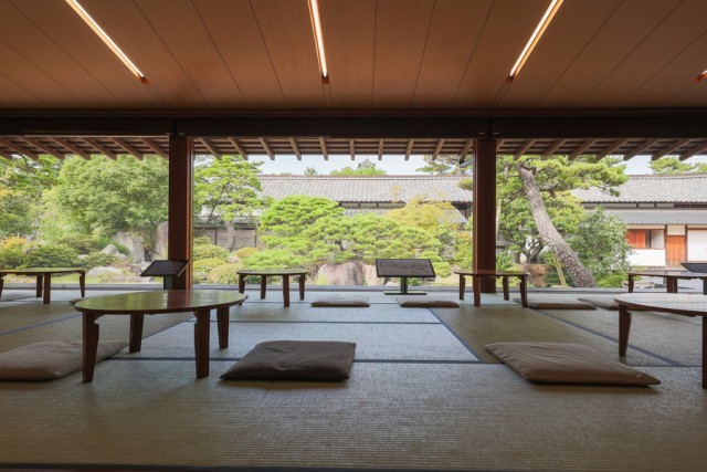 館内の「喫茶きはる」では、和菓子は抹茶とともに松江城天守や日本庭園を眺めながらたのしむことができます。