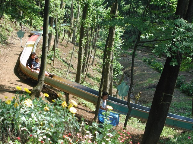 果樹の展示見本園、芝生の広場、木製遊具、バーベキューができるかまど(予約制)、東京都内で最も長い211メートルのローラーすべり台もあります。