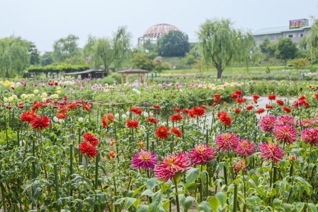 ダリヤは、例年9月中旬~10月中旬に見頃となります。