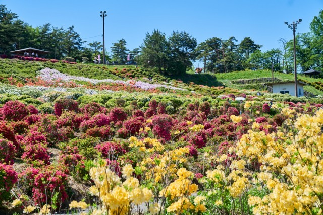 標高約160mの長岡山一帯を整備した公園です。園内には、「さくらの丘」がある桜の名所としても知られています。11種類、約4万3千株のつつじが植えられた東北最大級の「つつじ園」もあります。
