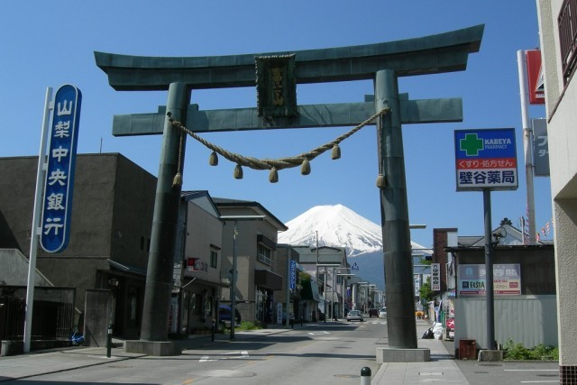 富士山信仰文化の象徴として愛されています。富士山頂に続く吉田口登山道の初めの門であるため「一の鳥居」とも呼ばれています。