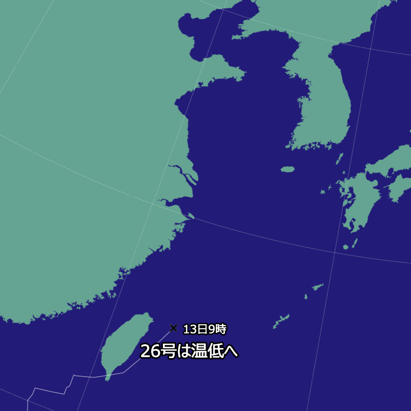 | 11/13 09:00 | 東シナ海 | 北東 時速30km | 1000hPa |